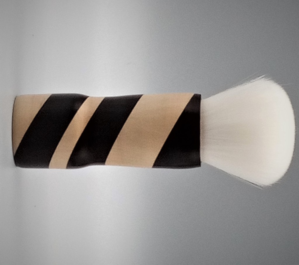 Rasoir sur portant en Cocobolo et insert en filet d’ErableEnsemble de rasage olivier Ébène. Assemblage en anneauxPinceau maquillage « Kabuki » Anneaux Charme et Ébène